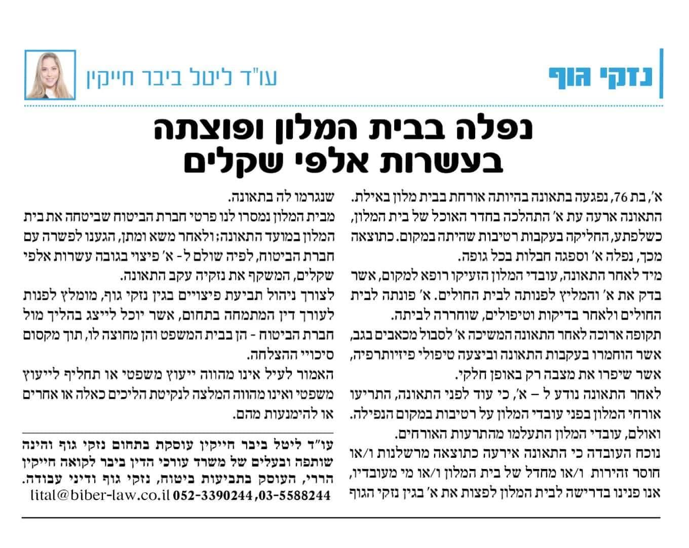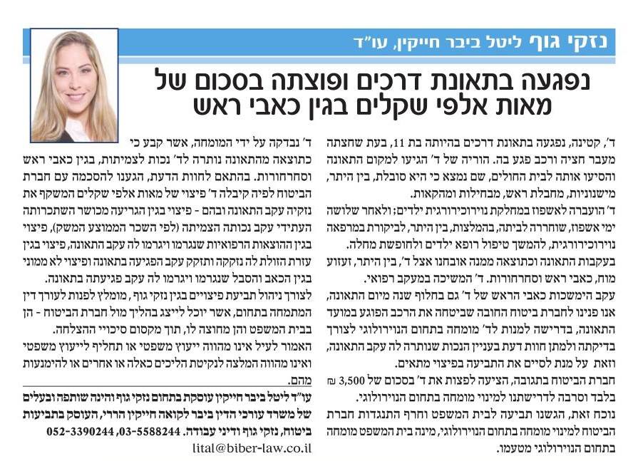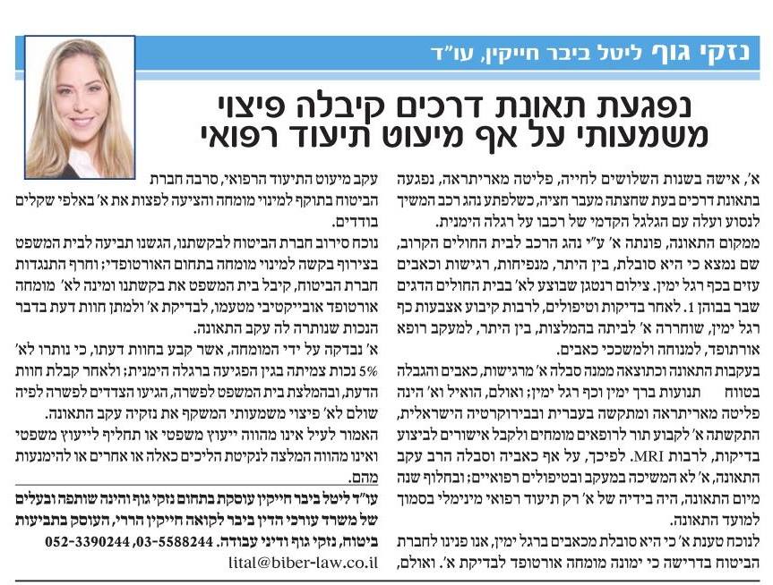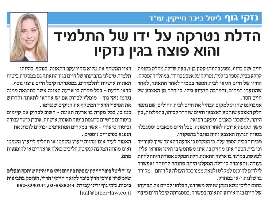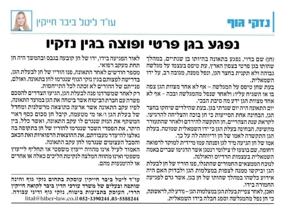 משרד עורכי דין ונוטריון ביבר לקואה חייקין הררי מייצג נפגעים בתחום דיני הנזיקין, על רבדיו השונים – תוך התמקדות בתחום נזקי הגוף, ולרבות: