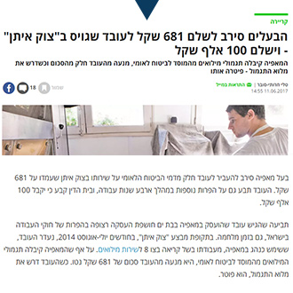 הבעלים סירב לשלם 861 שקל לעובד שגויס בצוק איתן - וישלם 100 אלף שקל