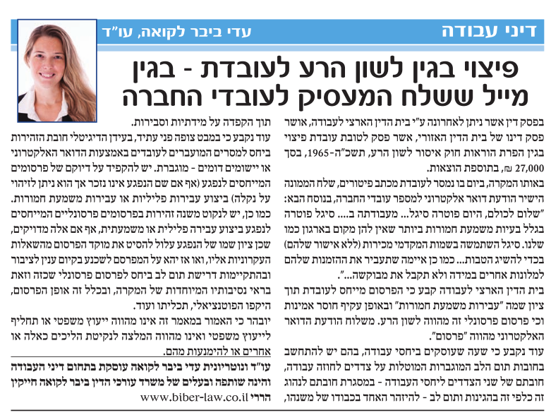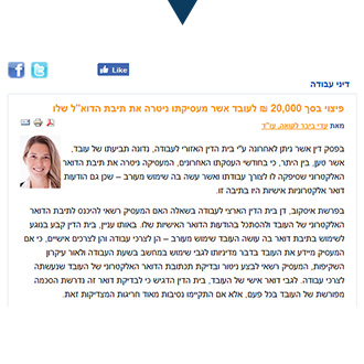 פיצוי בסך 20,000 ₪ לעובד אשר מעסיקתו ניטרה את תיבת הדוא"ל שלו