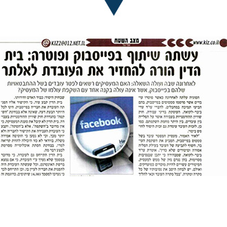 עשתה שיתוף בפייסבוק ופוטרה: בית הדין הורה להחזיר את העובדת לאלתר